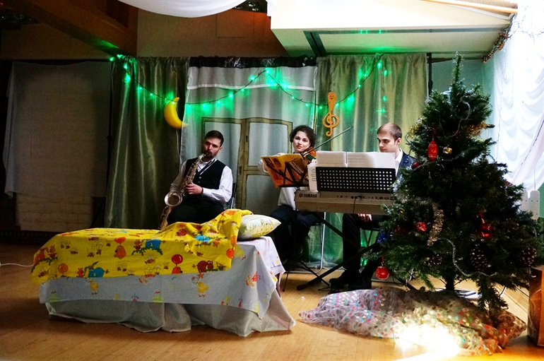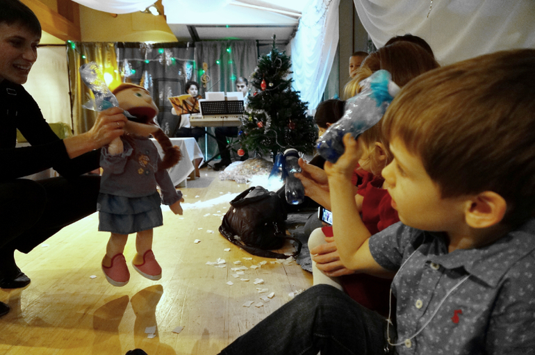 Куда пойти с ребенком? (Все о досуге с ребенком и семьей)Сегодня мы были на елке "Вместе с мамой", на той, что для детей постарше. Меня свербила мысль, не перерос ли Лев (5 лет), но нет - все прошло чудесно. Такие камерные мероприятия подходят нам лучше всего, сын раскрепостился, участвовал везде, где нужно, а потом танцевал от души под живую музыку)