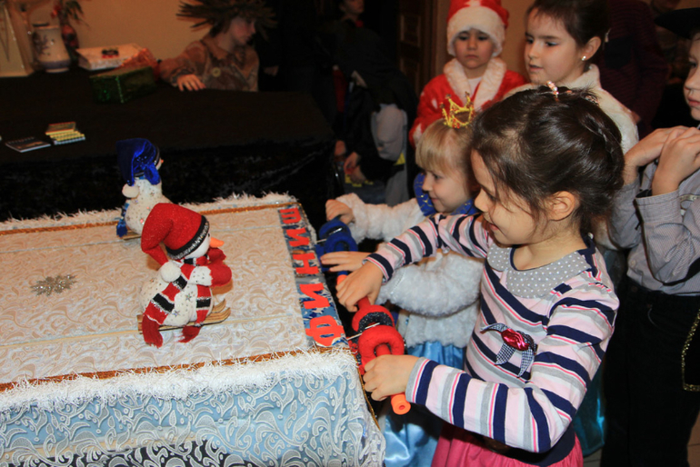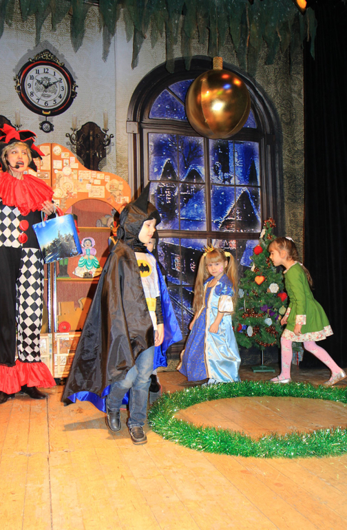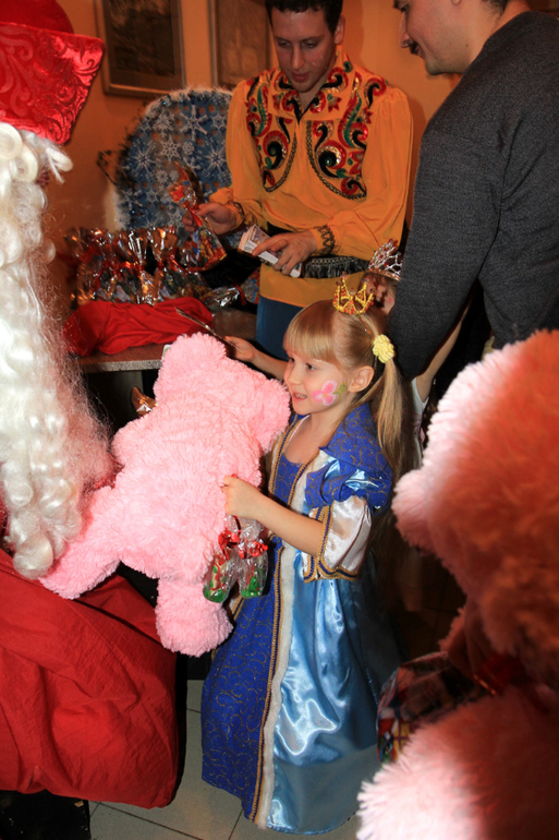 Был и конкурс костюмов! Правда, победителями стали сразу все - мелкими призами награждали всех, кто пришел в костюме, и даже тех, кто без костюма вышел на сцену к Деду и Снегурочке )))) Кстати, довольно много детей пришли в карнавальных костюмах, кого там только не было ))) очень понравились Снегурочка и Дед, последний так доброжелательно похохатывал, ну очень убедительно выглядел ))) И Снегурочка очень милая и внимательная, каждый ребенок услышал от нее искренне ласковые слова ))).