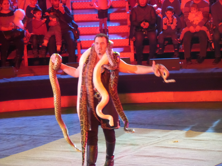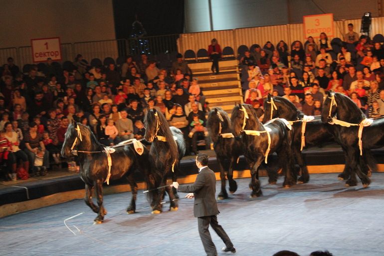 Билеты брали на месте,представление идет около 2-х часов с антрактом 30 минут.Зверей побольше чем акробатических номеров,но не намного.