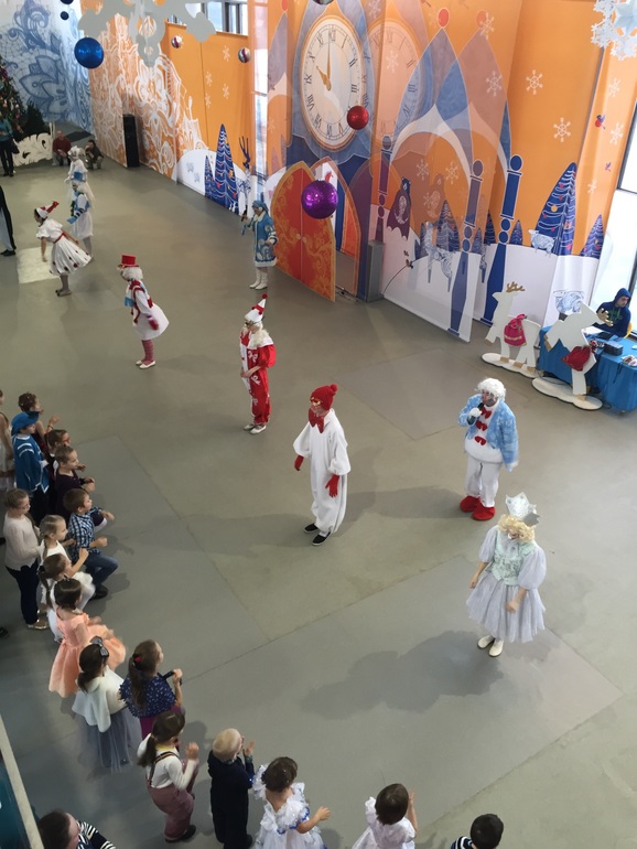 А потом было новогоднее представление в зале уже, зал небольшой, видно хорошо. Дети правда до 6 лет на коленях. Хорошо, что с нами кто-то не пришел и мартин сидел нормально!)