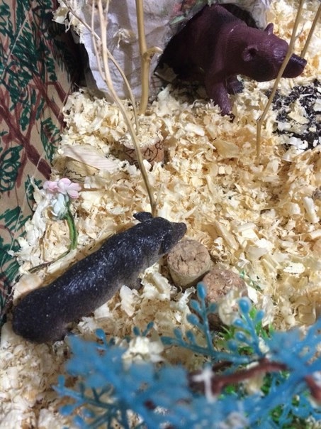 коробка, опилки, веточки, пробки от вина(из них сделали пробки)