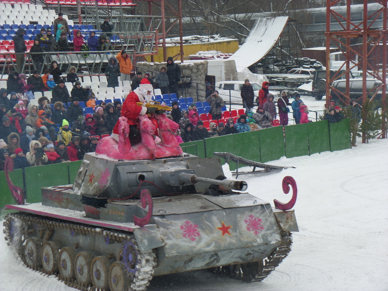Куда пойти с ребенком? (Все о досуге с ребенком и семьей)А проснувшись поутру и узнав,что билеты еще есть мы туда и поехали!!!!!Где еще можно покататься на печке,мотосанях,увидеть Дед Мороза на танке и Супербабушку на мотоцикле??!!!!Лично мы теперь знаем!!!!Фейеверки,трюки и каскадеры!Прекрасное,динамичное,интересное и зажигательное зрелище!!!!Проходит правда на улице(полтора часа),но они пролетели незаметно!В восторге были взрослые и дети!Ну,а мы,с нетерпением ждем Масленицу и следующую поездку к каскадерам!!!!!