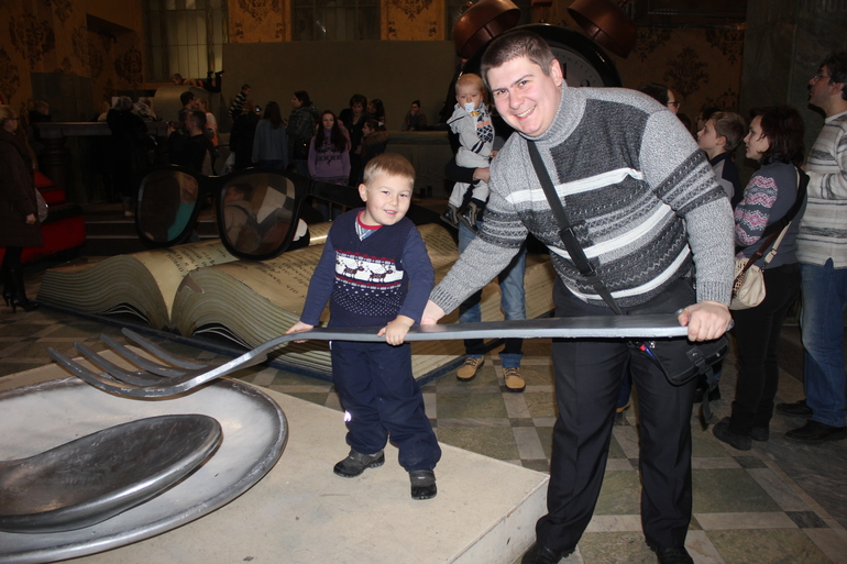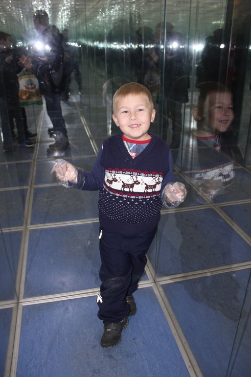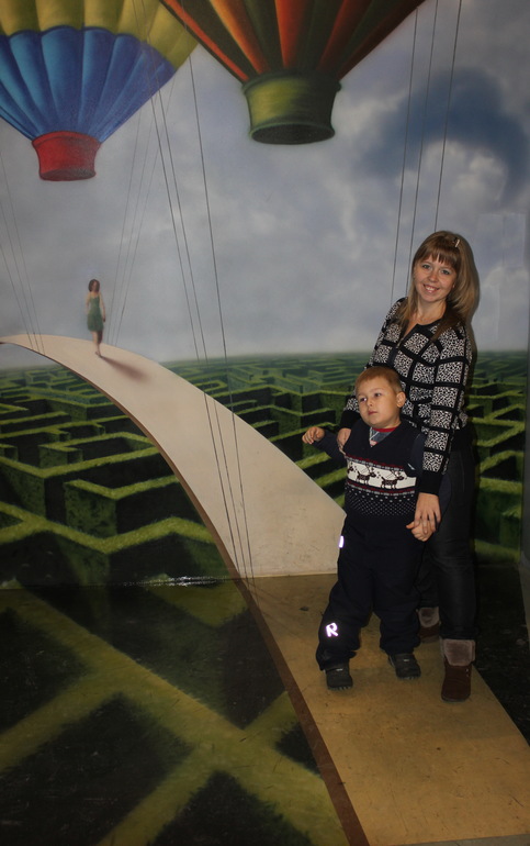Сначала мы посетили комнату великана. Очень необычно... Детишкам там нравится и наш Славик не исключение... Но народу там много, да там везде много народу. Я боялась Славика потерять. И еще одно... Там нет гардероба. Это тоже неудобно. Вещи просто складываются и вешаются на вешалки и полки..Честно скажу, так как нашему народу я не доверяю, то шубу свою оставлять боялась... Носила ее в руках или на себе... Мальчишки мои вещи оставили...