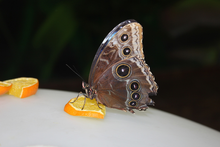 И последней нашей остановкой стал сад бабочек. Бабочек там немного или они прячутся... Не знаю.. Сидят в основном на потолке или на апельсинках.