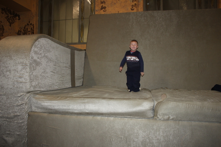 и огромный диван... На нем все дети прыгают, как на батуте...