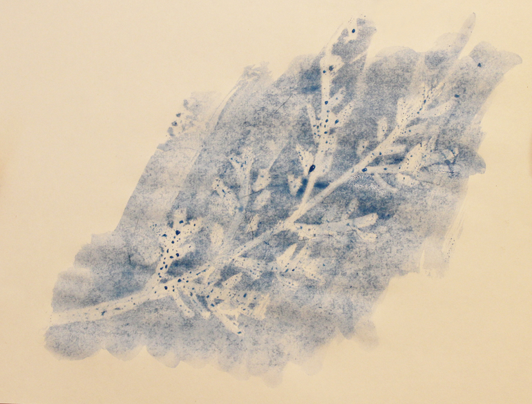 Мы рисовали разведенной гуашью синего цвета. Просто в стаканчик наливаете немного воды и разводите немного гуаши в нем (подкрашеная вода получится) и в эту воду окунаем кисточку и начинаем творить чудеса))). Думаю с акварельными красками проще всего будет, они не такие плотные, как гуашь и их разводить не надо будет.