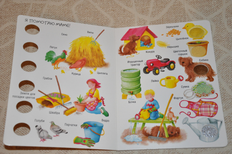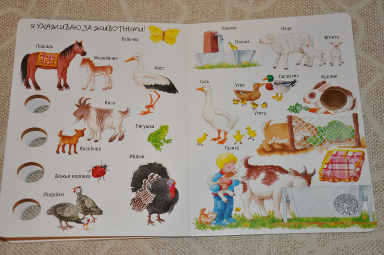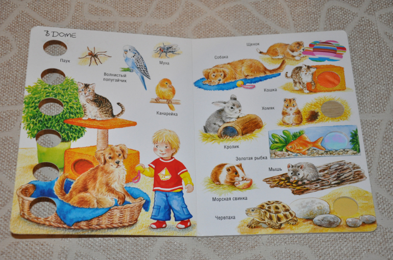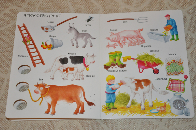 Такая (или похожая) книга, наверное, была (есть или будет) у каждого малыша)) Я, кстати, купила ее достаточно поздно, где-то в Артурины года полтора. Не скажу, что она была любимой у Артура, но интересной для него была точно.