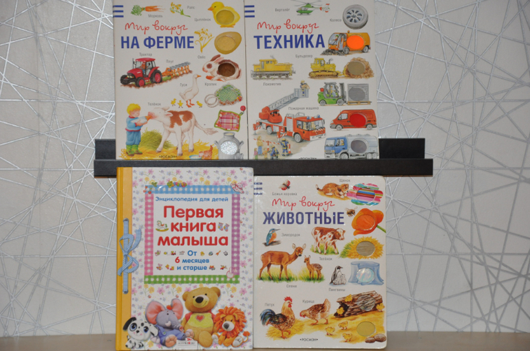 1. "Первая книга малыша. Энциклопедия для детей от 6 месяцев и старше", изд-во "Стрекоза".