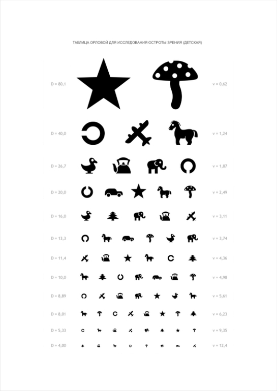 На днях распечатаем детскую таблицу окулиста Орловой и будем всем зрение проверять.