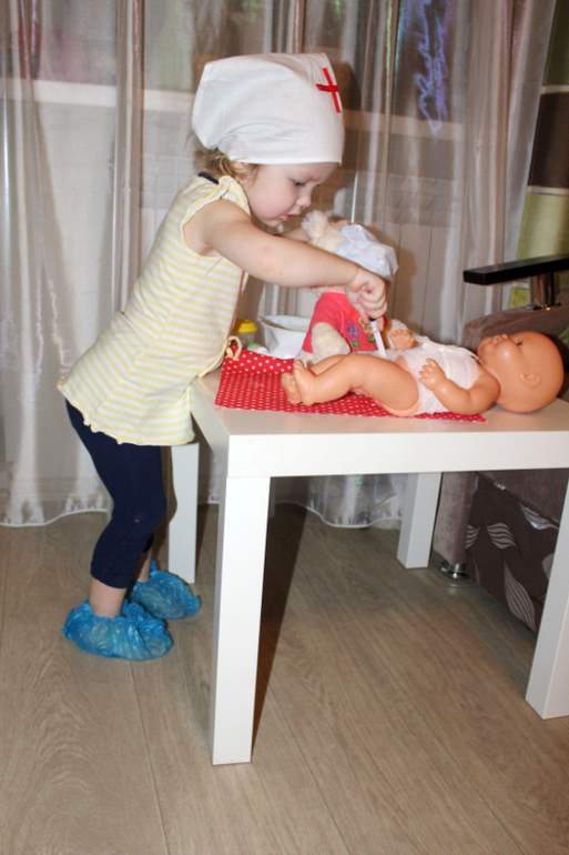 Началось все с тех пор, когда я выбирала подарки к НГ, и подумала, что было бы неплохо купить Варе готовый наборчик доктора.Потом посмотрела на них и передумала. Потому что там либо все жутко-розово-пластмассовое и неправдоподобное либо более менее, но с кусачей ценой, да и все равно предметов мало.