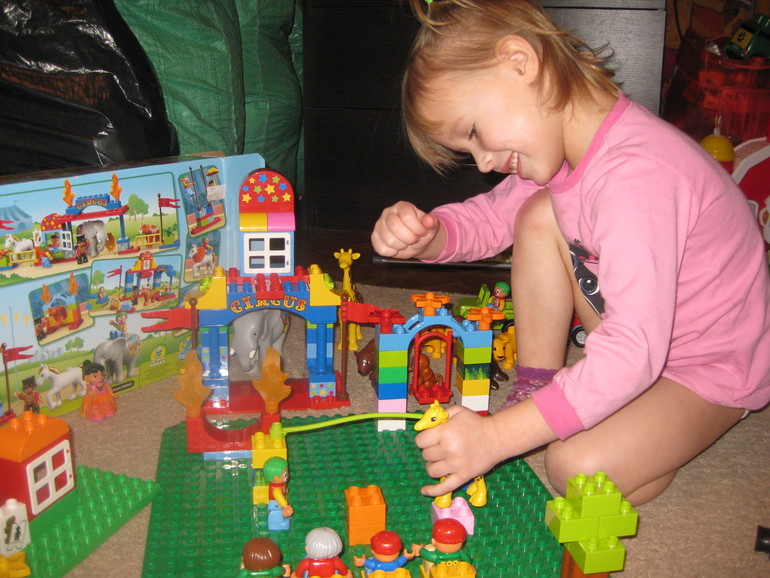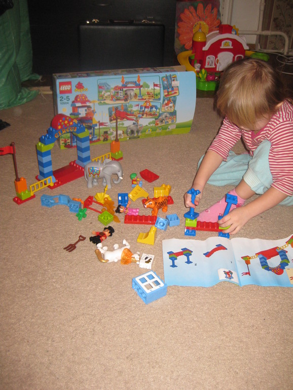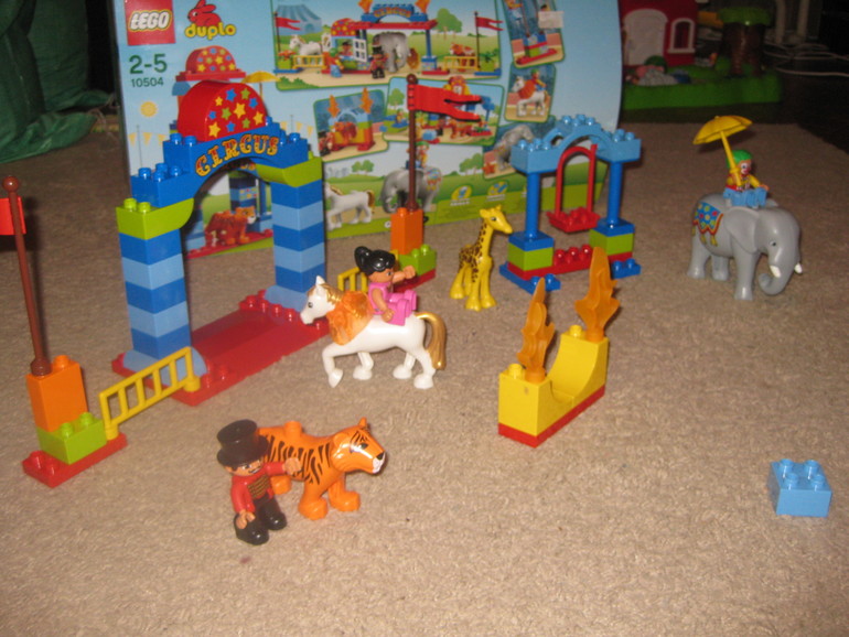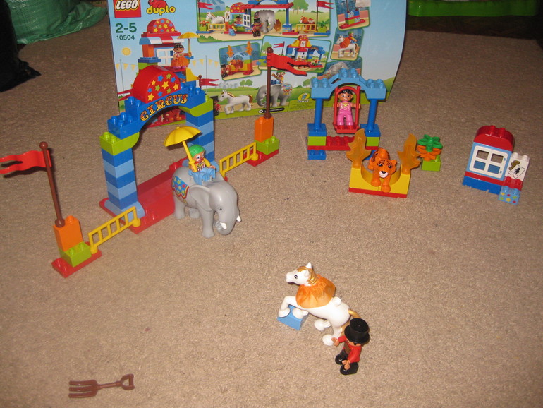 Первое время играли только этим набором, но потом смешали все наши имеющиеся наборы, а т.к. у нас есть зоопарк то в нашем цирке выступают все животные!! а еще и зрители есть, которые вначале приезжают на машинах, покупают билеты а потом рассаживаются на свои места где их ждет интересное представление!!