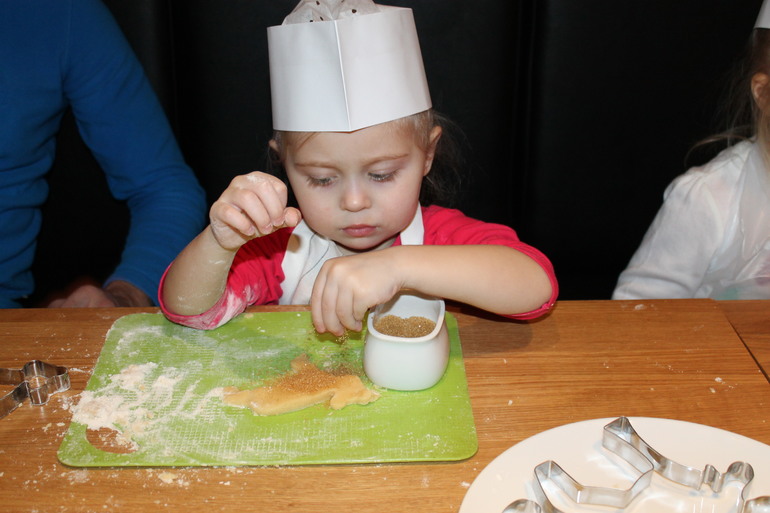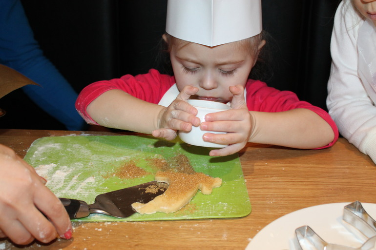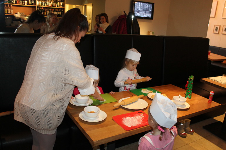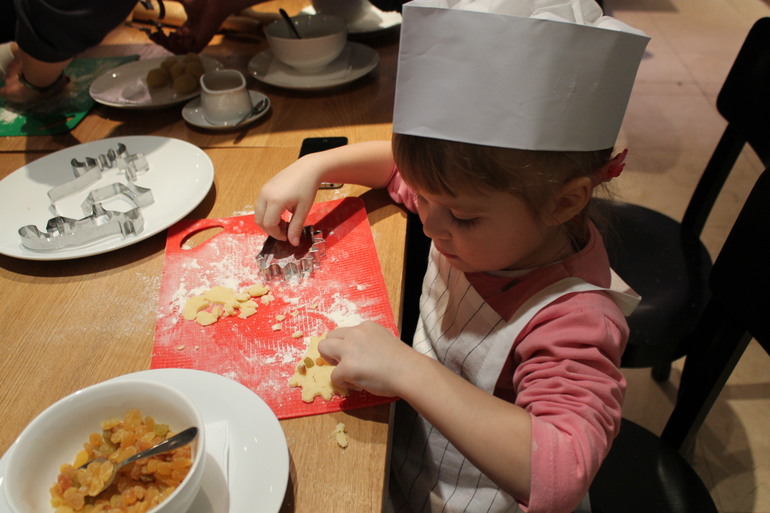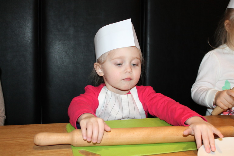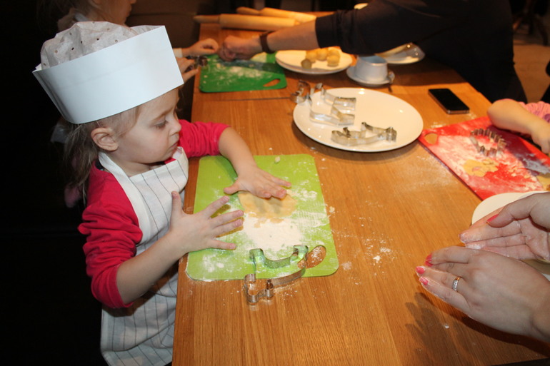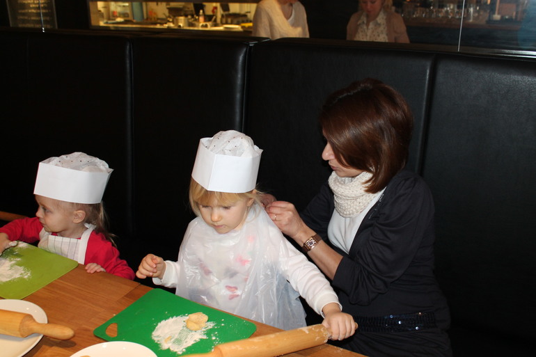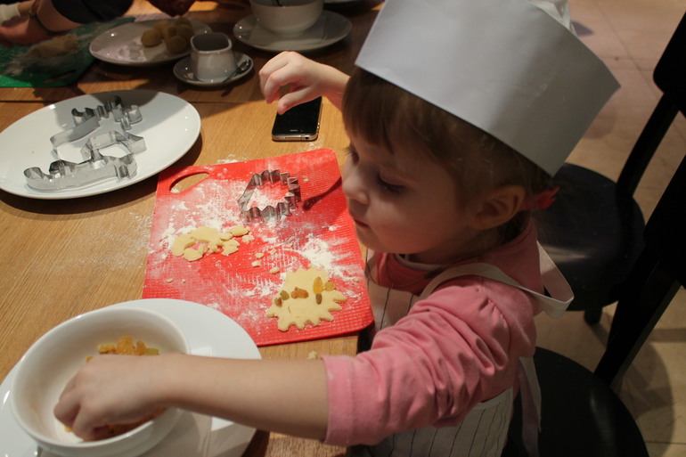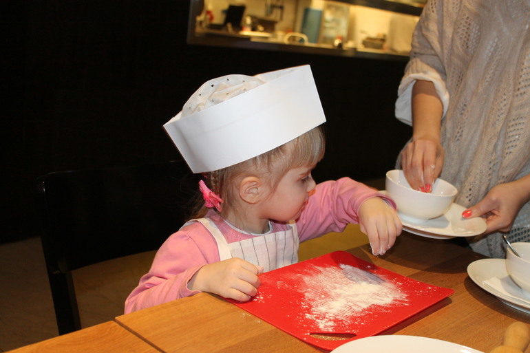 Эта девушка занимается печет с детками ..пиццу, печеньки....Мы попали в тот день,когда пекли печеньки...