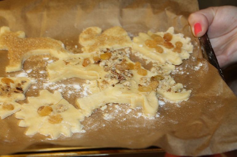 посыпали все это дело изюмом, орехами и тросниковым сахаром