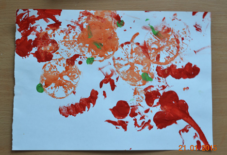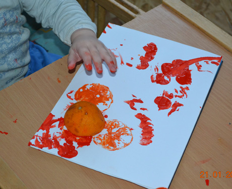 Штамповали мы апельсином и морковкой и пальчики тоже пошли в дело.