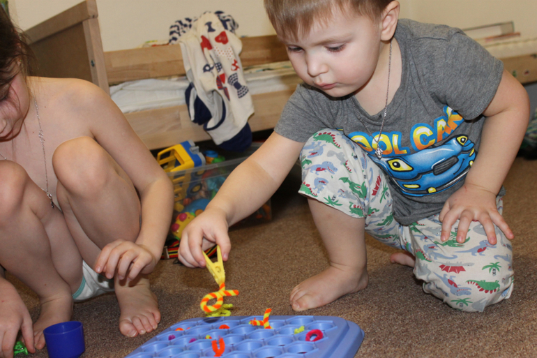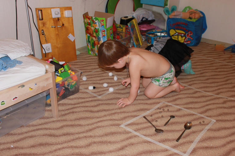 Или формочки для льда используются. Артемий у нас любит сортировать разные предметы, но это для совсем малышей,конечно. Для которых просто разложить по ячейкам уже интересно.