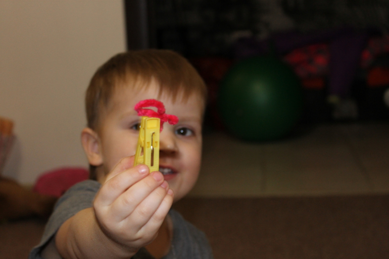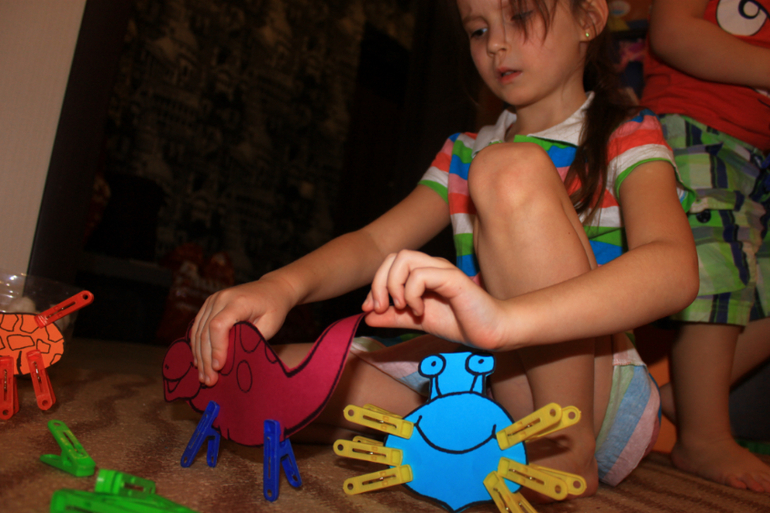 Ох и недооцениваем мы всех свойств этих простых вещей. Ну начнем с простого предложения детям нацеплять прищепки на листочки бумаги, можно попробовать скреплять прищепки между собой, можно делать «ножки,ручки,хвостики» каким-нибудь существам.