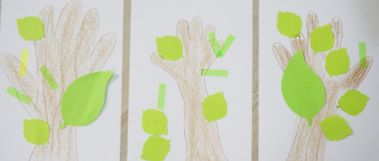 Мы обвели руки папы, мамы и Маши и сделали деревья с листиками.