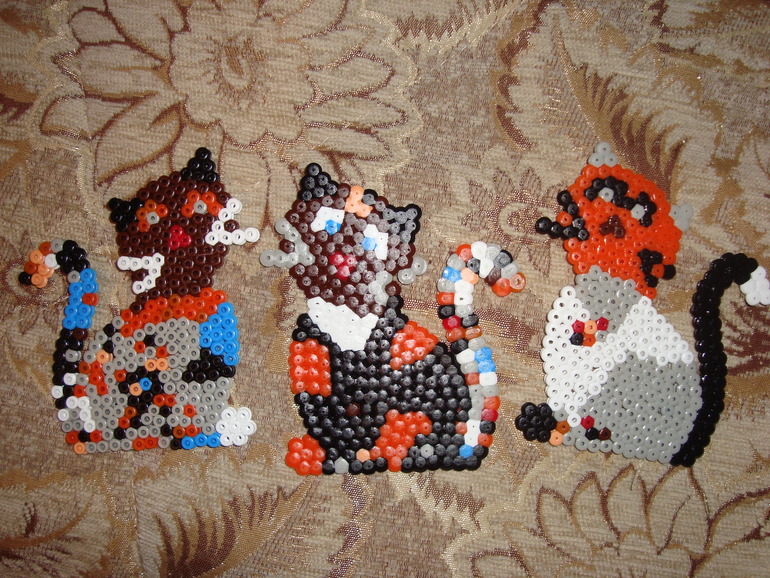 Вторая попытка была неделю назад. И в отличие от первой неудачной попытки я предложила собирать вместе. Тася предпочла делать хвосты, а я голову) Над туловищем тоже трудились вместе. И если в первый раз я зачем-то руководила какой цвет куда ставить, то сейчас дала право выбора и интерес попер!!!! В один вечер мы сделали одну кису, а во второй Тася потребовала сделать сразу двух! Качество меня порадовало и что фигурки не большие тоже, как раз для начинающих.
