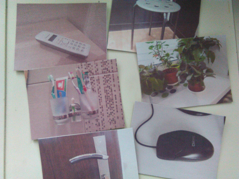 Прошлась по квартире с фотоаппаратом, пофотографировала разные вещи , распечатала и сделала карточки. Теперь я показываю карточку, а Соня ищет, где это находится. Получилось 4 вида карточек: