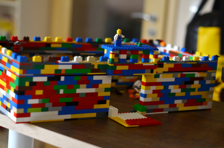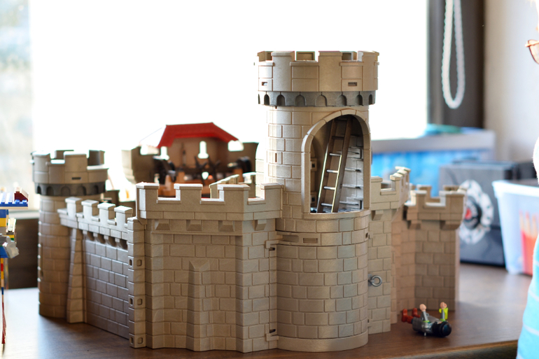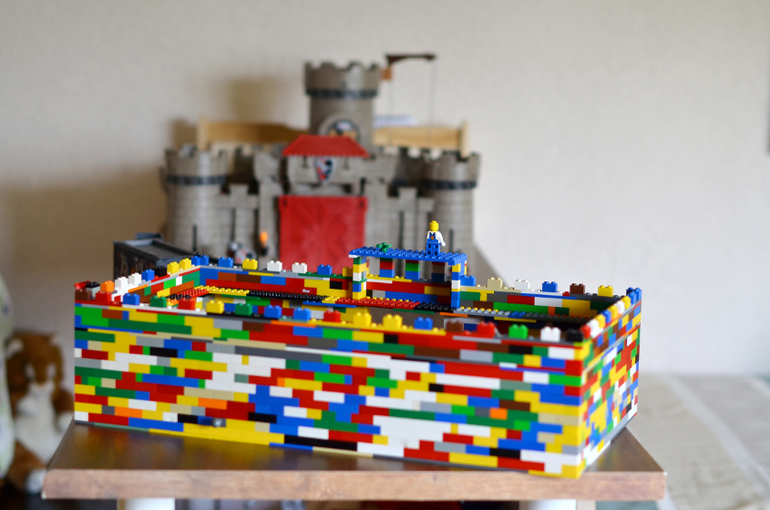 Но как только собрали его, тут же начались разговоры о том, что надо бы прикупить еще один замок побольше. А как иначе должны воевать хорошие против плохих?!!! У мамы глаза на лоб чуть не вылезли))) Но тут нежданно-негаданно выручил папа, предложивший в экономных целях использовать лего. Благо, этого добра у нас хватает. Потратили мальчишки на сборку замка один вечер и из их рук вышло вот такое творение.