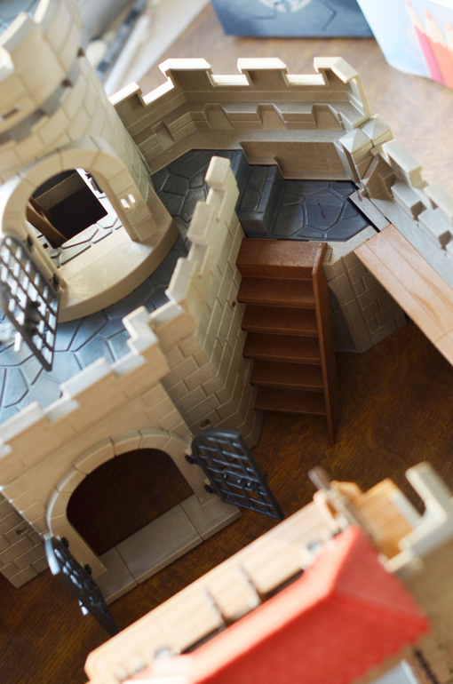 К замку прилагаются воины, лошадь, оружие, которые не попали в кадр, т.к. я просто не разобралась что к чему относится, а ребенку было недосуг разбирать мелочевку. Помимо замка у нас есть большой пиратский корабль и несколько маленьких наборов плэймобиль, использующиеся достаточно активно не только старшим, но и младшим. Маленькому любителю повтыкать что угодно и куда угодно жутко нравится вставлять снаряд в пушку и стрелять.