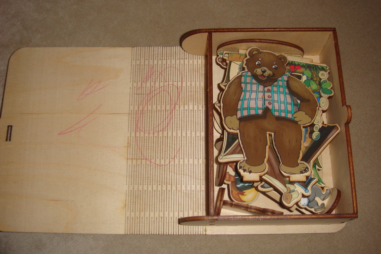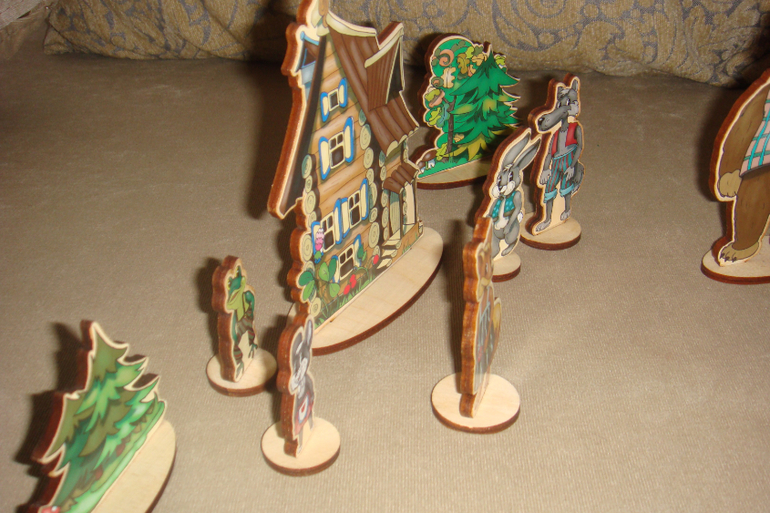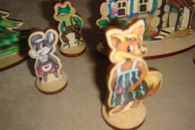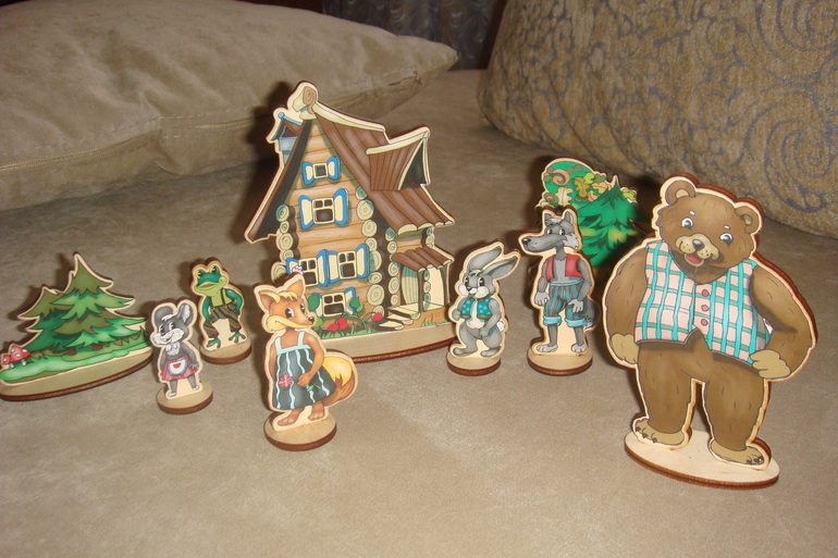 А сейчас купила еще один, да такой классный. И главное он из дерева, что немаловажно для маленьких детишек. Фигурки прямо пахнут деревом. В комплекте находится фанерные красочные фигурки на подставке, выразительно изображающих персонажей сказки, оригинальный текст сказки и методические рекомендации по созданию постановки так же уже есть в наборе! А также оригинальый сундучок для хранения.