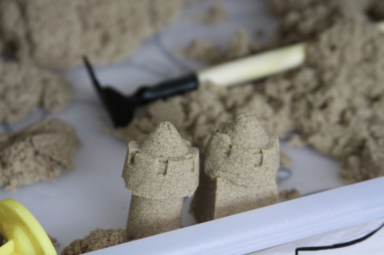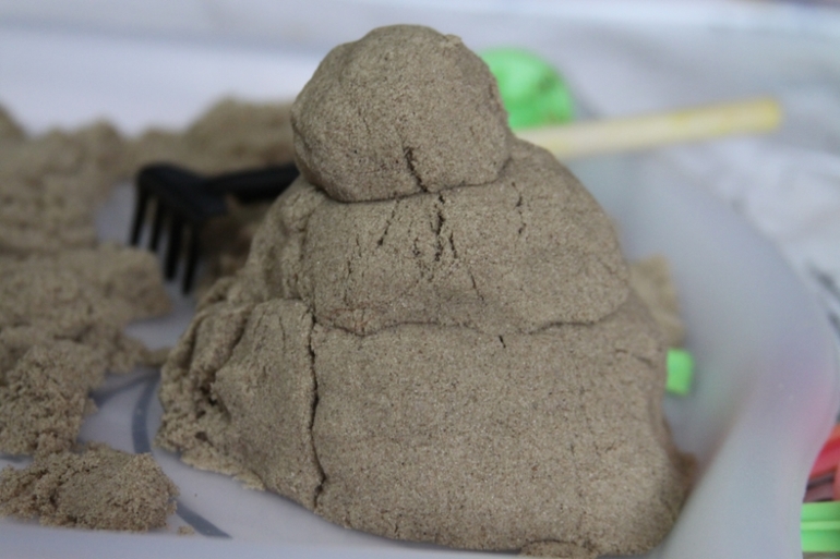 Песок очень приятный на ощупь - дети с удовольствием его мнут, просыпают сквозь пальцы - делают все, что доставляет не только удовольствие, но и приносит огромную пользу для развития мелкой моторики, а ещё конечно же творческих способностей и фантазии :)