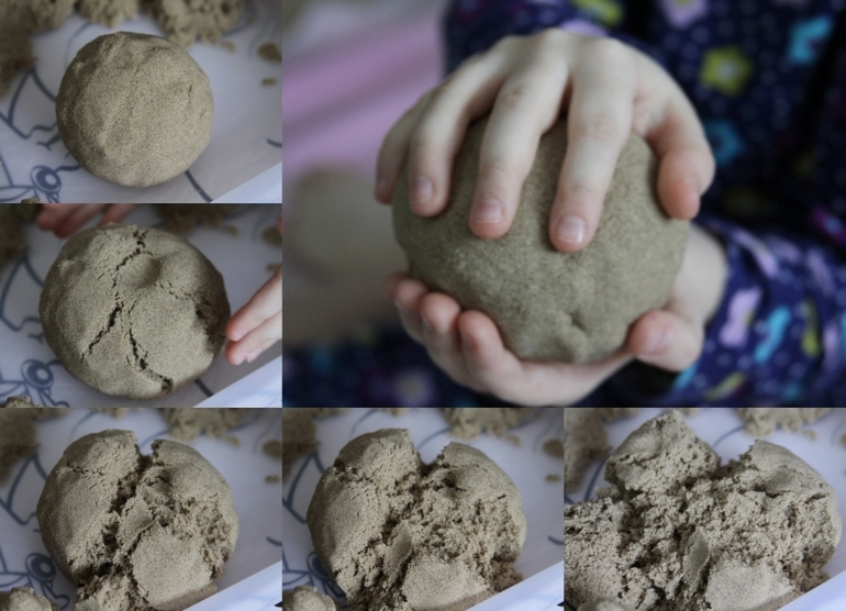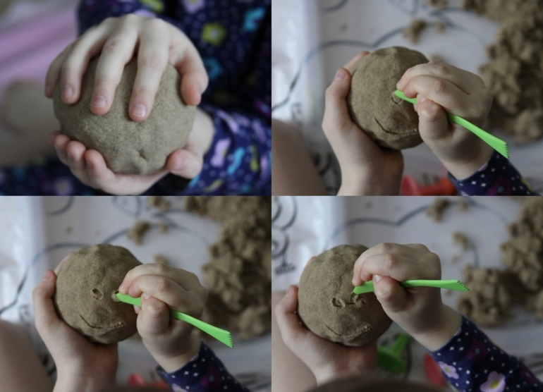 Любителям лепки - у этого песка не так много возможностей, как у пластилина, но и забавные лица с помощью стека на нем очень даже неплохо получаются :)