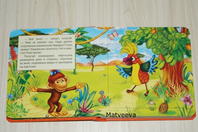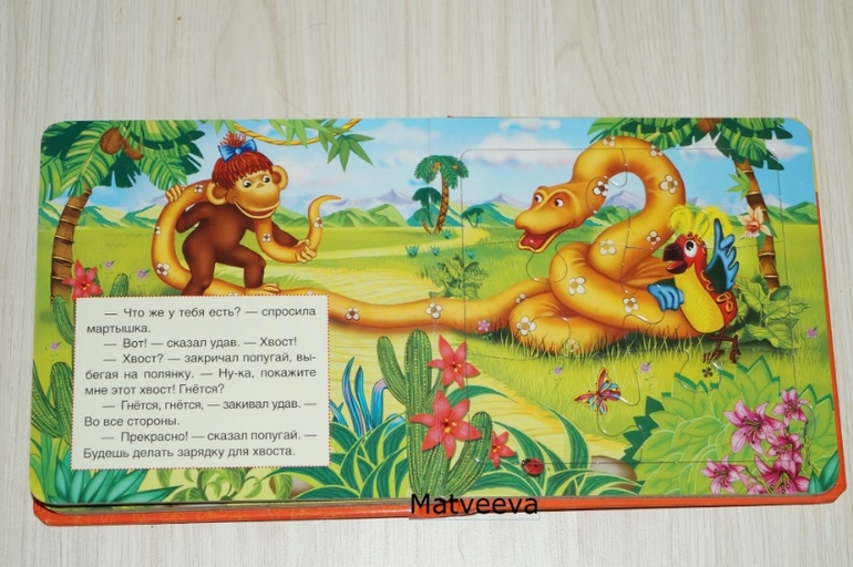 Книга по мультику 38 попугаев) дочке очень нравится этот мультик) поэтому сначала мы ее просто читали и рассматривали картинки, а потом научились собирать пазлы.