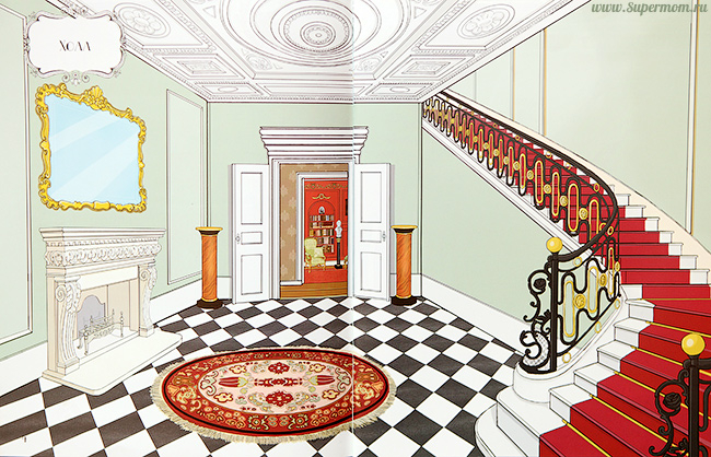 Абсолютно девчачье баловство: страницы с пустующими комнатами красивого особняка, которые надо заполнить мебелью и предметами интерьера.