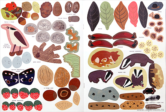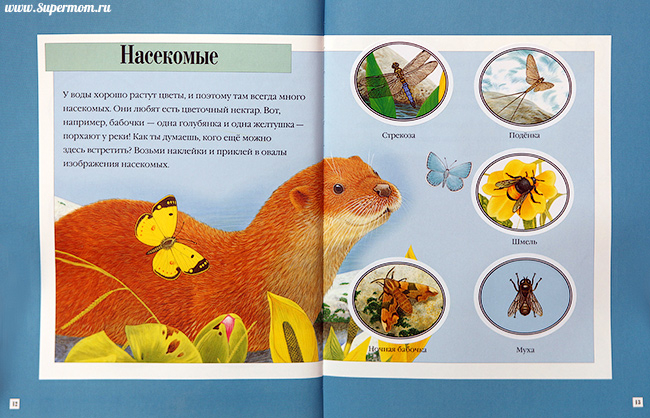 Это толстый альбом с наклейками. На каждой странице есть справка о животных и задание с наклейками: найти пару или разместить в свою среду обитания.