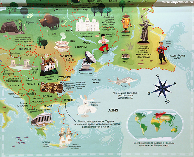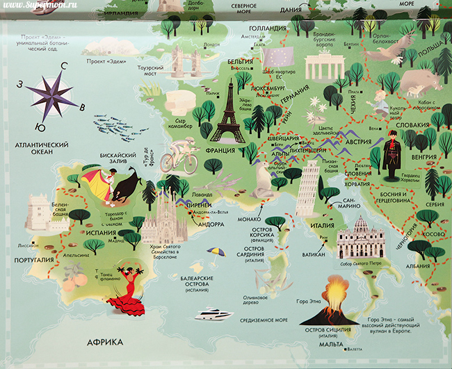 Очень симпатичный и познавательный атлас на плотных глянцевых листах и с наклейками.