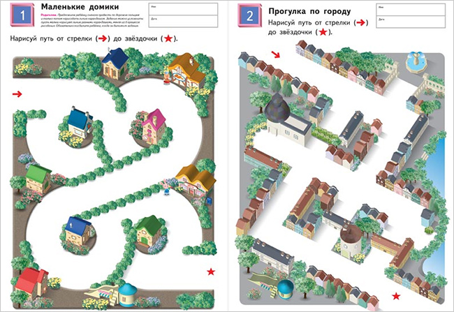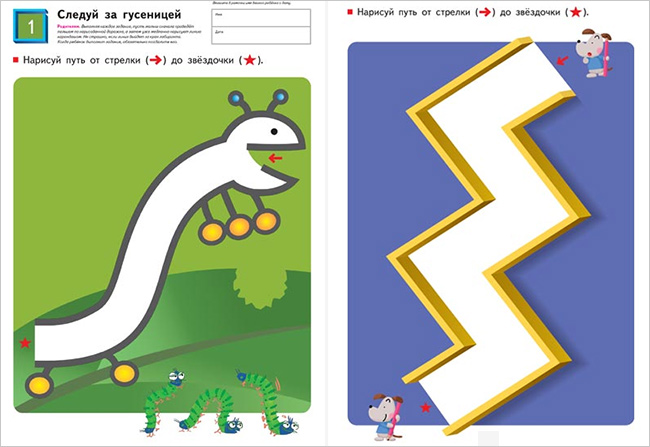 Лабиринты и линии в тетрадях с пометкой "2*3*4" я начала давать около двух лет. Сначала Алиса просто водила по ним пальчиком, училась координировать движения, потом уже, спустя несколько месяцев, взяла в руки карандаш. Кстати, многие сканируют эти пособия, чтобы иметь возможность выдать ребенку задание несколько раз, все-таки тетради не дешевые. А некоторые даже ламинируют страницы и выдают водные маркеры, чтобы проходить одно и то же задание несколько раз и иметь возможность исправлять ошибки.