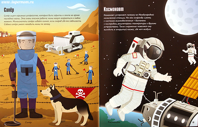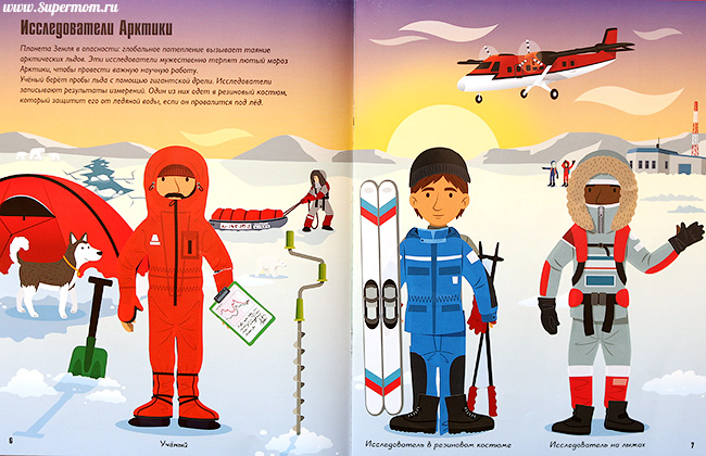 В серии есть альбомы и для девочек, и для мальчиков. Алиса любит и те и те, с одинаковым удовольствием клеит рыцарей и фигуристок. Кстати, несмотря на пластиковый лоск героев этих альбомов, по некоторым удалось объяснить много интересных вещей. Рассказать про саперов, космонавтов, спасателей, землятресения, исследователей арктики, костюмы разных народов.
