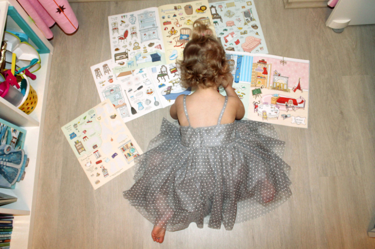 А когда грустно, что может быть лучше наклеек и платьев принцессы? По традиции на полу)