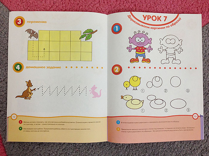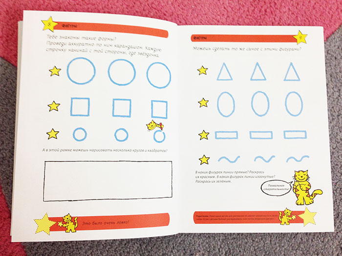 Что лично меня раздражает: в конце каждого задания прописывается "цель". "Цель: проводить горизонтальные линии". Без подобных пояснений я бы, конечно, не разобралась что к чему.