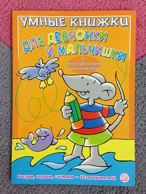"" ("Эксмо"), 58 руб. 4 листа. Совсем не впечатлило - книжка-тонюська, всего 8 рисунков на которых что-то там можно дорисовать по клеточкам. Да и задания на мой вкус не интересные. "Многоразовость" весьма сомнительное преимущество, мы обычно не делаем одни и те же задания по много раз. В общем, посмотрим, понравится ли детям.