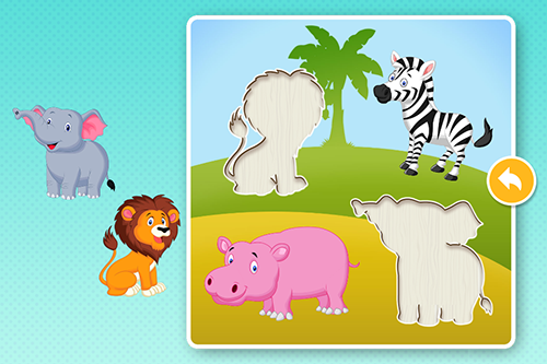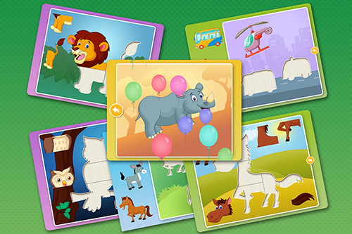 Все пазлы разбиты на 2 уровня. На первом уровне представлены тематические пазлы, которые ребенок собирает перетаскиванием объектов целиком. Это самое простое с чего лучше начать игру. На втором уровне ребенок уже может собирать животных и объекты из кусочков, начиная с небольшого количества и переходя к все более сложным.