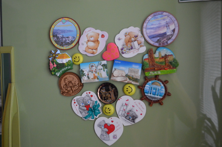 Но пока мы подарки наши спрятали до субботы) А для создания предпраздничного настроения я на холодильнике в кухне тоже соорудила инсталляцию из магнитиков в виде сердца
