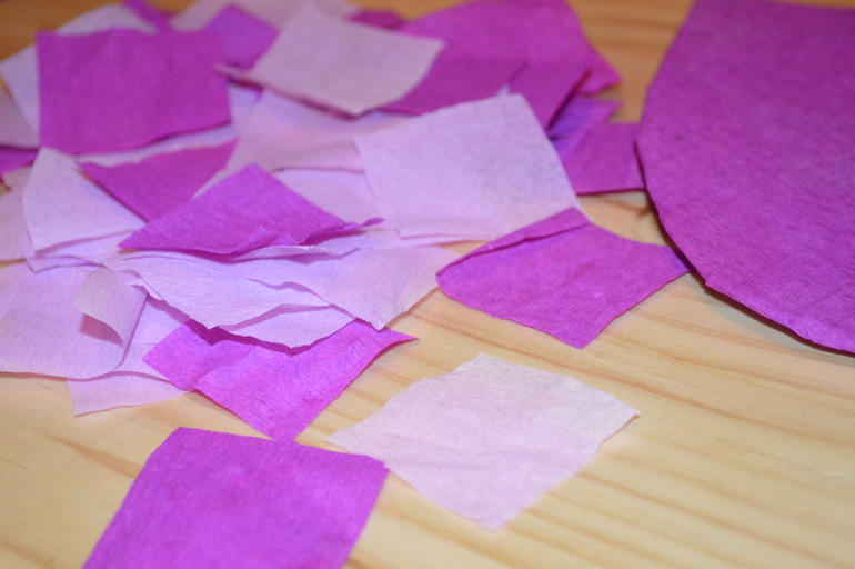 Нарезала бумагу квадратиками со стороной примерно 3-4 см. Тут точность совершенно необязательна, плюс/минус сантиметр совершенно не будут заметны.
