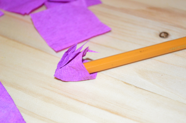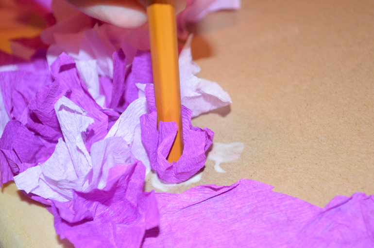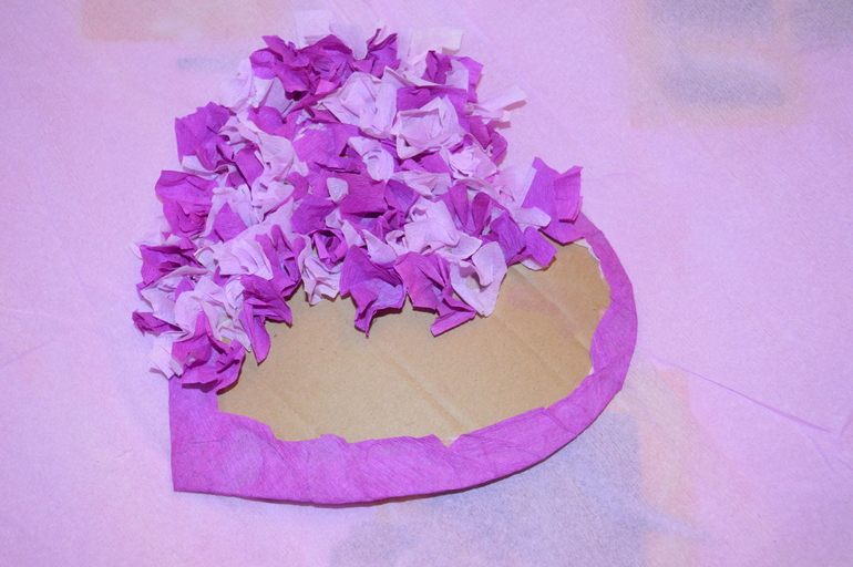 Обратную сторону обклеила креп-бумагой с помощью клея ПВА, края бумаги загнула на лицевую сторону и тоже подклеила. Потом нужно было дать основе хорошенько высохнуть.