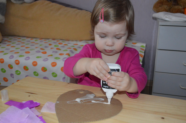 Катюша выливала из тюбика клей на основу