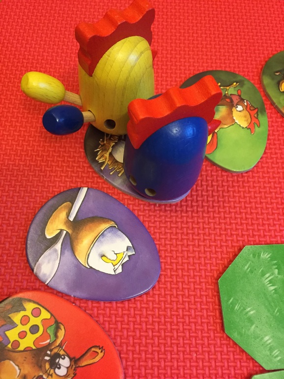 Суть игры: Беговая дорожка состоит из 24 карточек с изображениями того, что можно встретить на птичьем дворе. Цыплята игроков занимают на беговой дорожке стартовые позиции и затем начинают гонку. Чтобы продвинуться на одну карточку вперед, нужно отыскать на птичьем дворе карточку с таким же изображением. Карточки птичьего двора лежат рубашками вверх и после первоначальной расстановки не меняют своего положения. Если игрок смог угадать-вспомнить расположение нужной карточки, то его цыпленок прыгает на шаг вперёд и так до тех пор, пока игрок будет успешно находить нужные предметы. Если же игрок открыл не ту карточку, его ход прекращается.