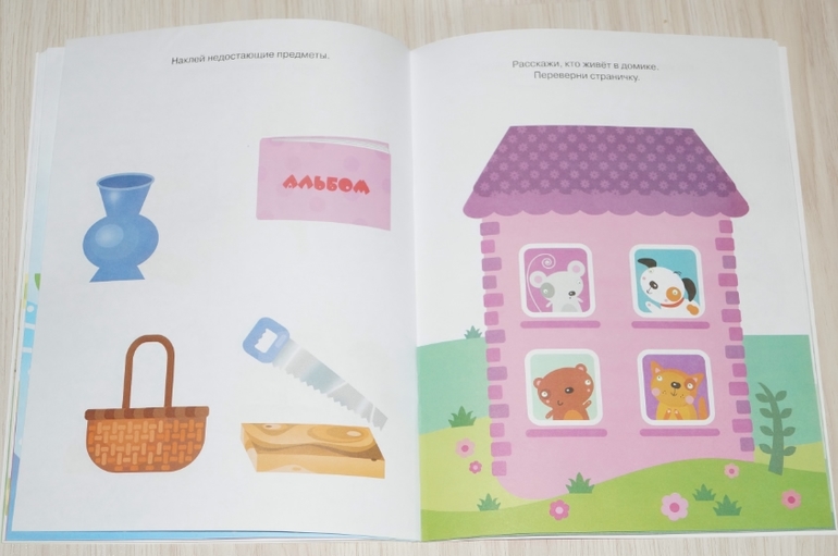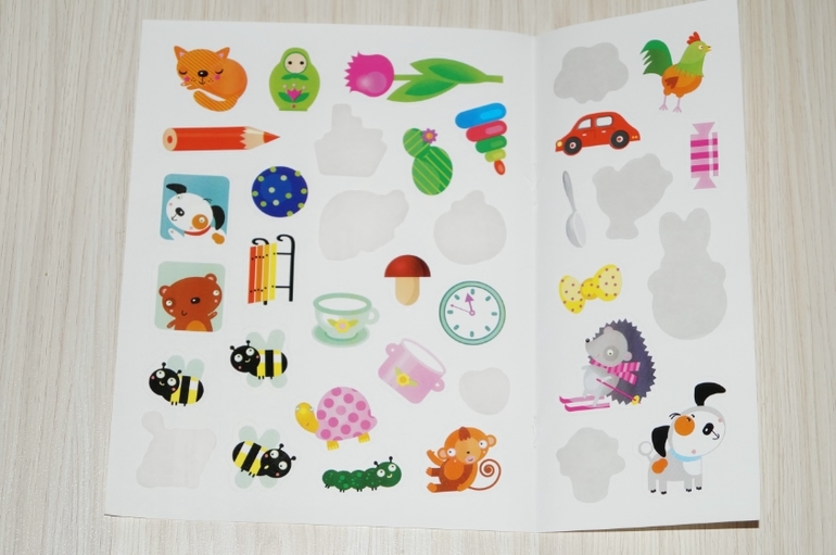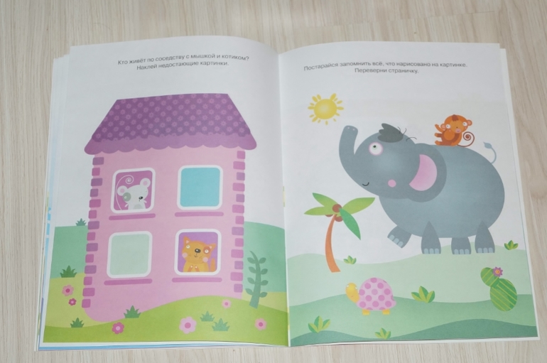 Тоже очень нам понравилась) отличное пособие для тренировки памяти) нужно сначала внимательно рассмотреть картинку, потом перевернуть страницу, определить, что изменилось на картинке, и восстановить картинку с помощью наклеек)) дочке очень нравится)