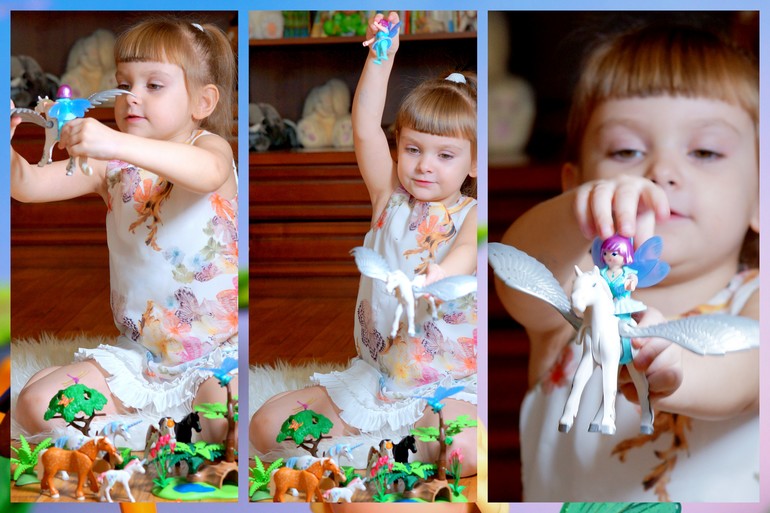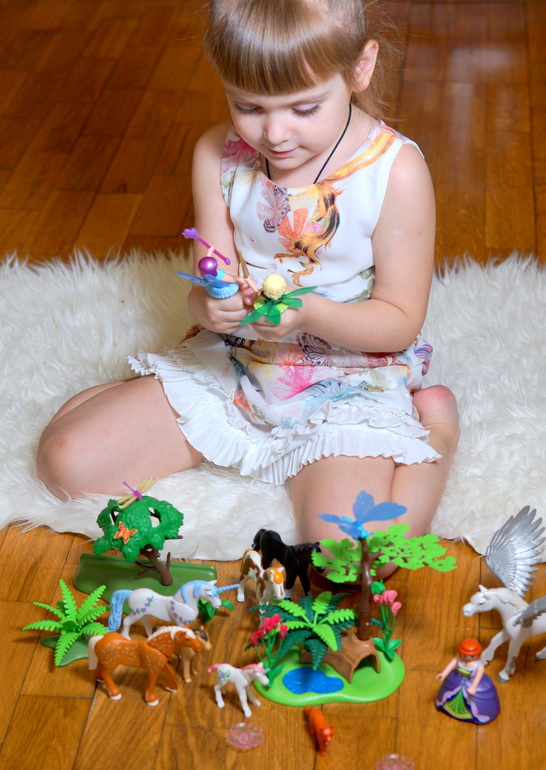 Для меня стало традицией вместе с дочкой расставлять перед сном по конюшням пегасов и единорогов, загонять непослушных утят и рассаживать бабочек по деревьям. А утром первым делом бежать проверять расцвели ли цветочки на кустах и вплетены ли розочки в гриву пегаса...