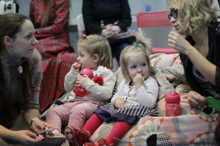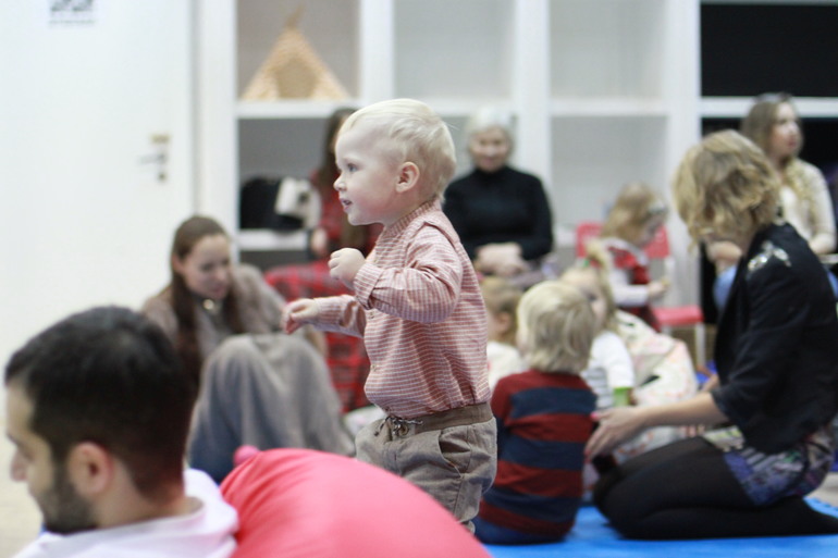 Мне нравится такой легкий формат, ощущение свободы витает в воздухе. Никакого принуждения, хочешь клей открытки (была зона с приятной девушкой, которая занималась с малышами), хочешь прячься в домиках, хочешь танцуй, просто валяйся на пуфах..
