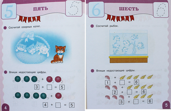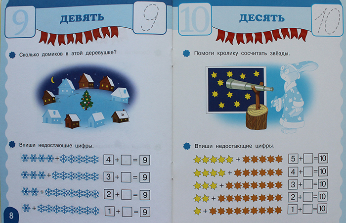 Книжчкана мой взглд долгоиграющая. Сначала можно клеить наклейки, считать предметы/животных, а потом и решать примеры.