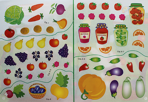 Развивающая книжка с наклейками. Овощи, фрукты и ягоды. Издательство "Стрекоза" (в Labirint.ru)