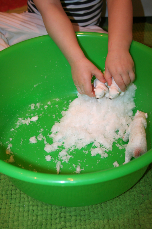 решили, что дома не хватает для полного счастья снега. Распотрошили 1 подгузник, залили водой и наслаждаемся
