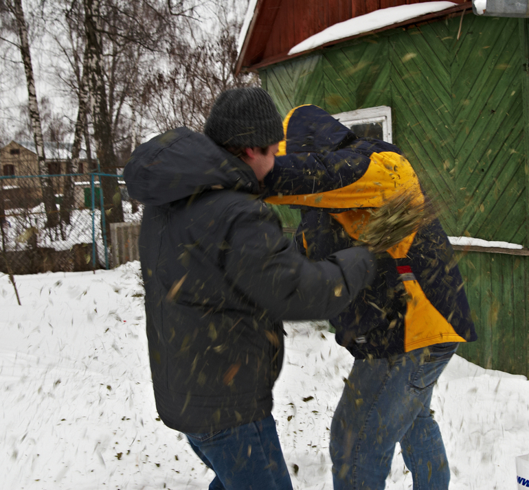 Несколько лет назад друзья пригласили нас на День Рождения своего сына. День Рождения выпал на Масленицу, поэтому мы решили провести его в стиле масленичных гуляний. Получилось очень здорово, весело и оригинально. Наша развлекательная программа проходила на улице, что придало празднику атмосферу народных гуляний. Конкурсы мы выбрали разнообразные, и для взрослых и для детей. Папы с удовольствием бились вениками, пока не облетят все листочки. Дети играли в петушков, выталкивая друг друга из нарисованного круга. Особенно всем полюбилась игра "Сбей шапку". .Какой был накал страстей! Весело прошли прыжки в мешках. (нашлись только из под сахара, но лучше использовать тряпичные). Ну и конечно, в конце сжигали Масленицу. К слову сказать, детям это понравилось больше всего. А дома нас ждали блины(ну и много еще чего вкусного))))! Вот так здорово мы провели День Рождения с Масленицей!